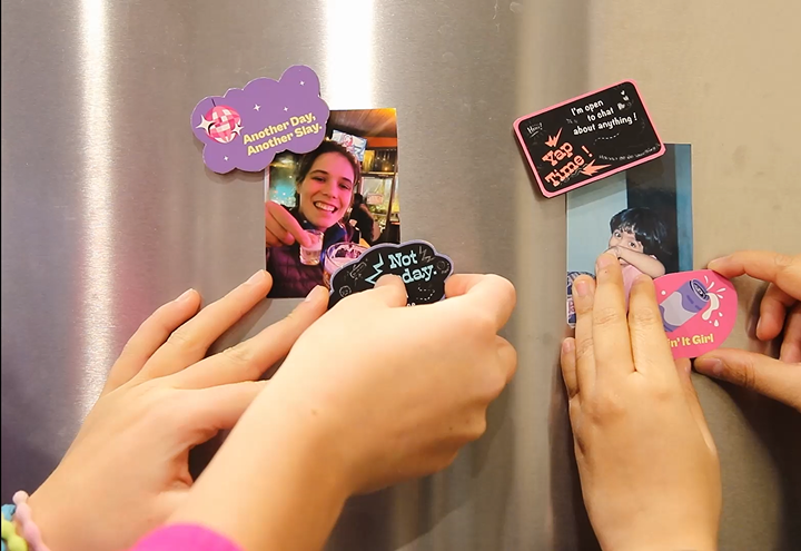Passive magnet signals enable continuous, low-effort communication without adding verbal pressure. Magnets were chosen for their constant visibility, dorm integration, and unavoidable presence.
